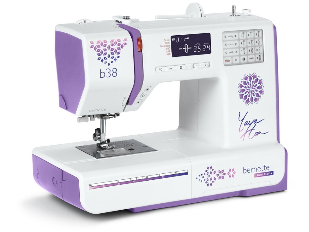 Bernette 38 je nejvyšším modelem "třicítkové" řady. Speciální edice tohoto oblíbeného modelu Bernette 38 Yaya Han disponuje kromě krásného designu i 394 druhů a tří knoflíkových programů. Od běžného modelu 38 jej odlišuje i bohatá nadstandardní výbava v podobě 2 nůžek a párátka stejného designu a 5 šicích patek navíc, včetně kráčející patky.