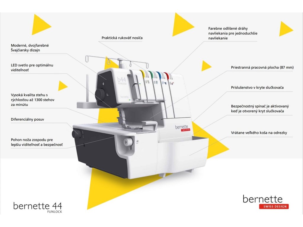 Vlastnosti overlocku Bernette 44 Funlock: