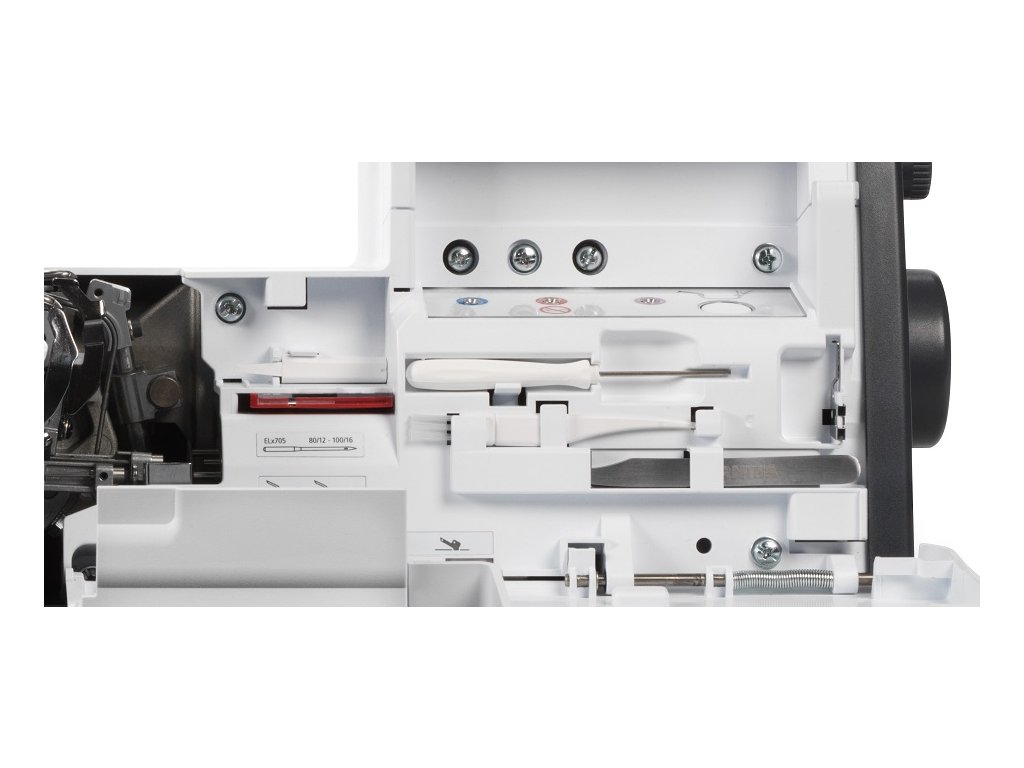 - Příslušenství vždy po ruce, umístěné prakticky pod krytem smyčkovačů