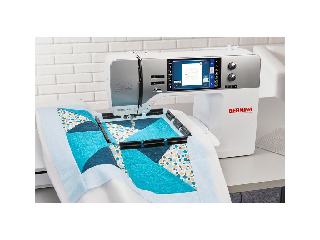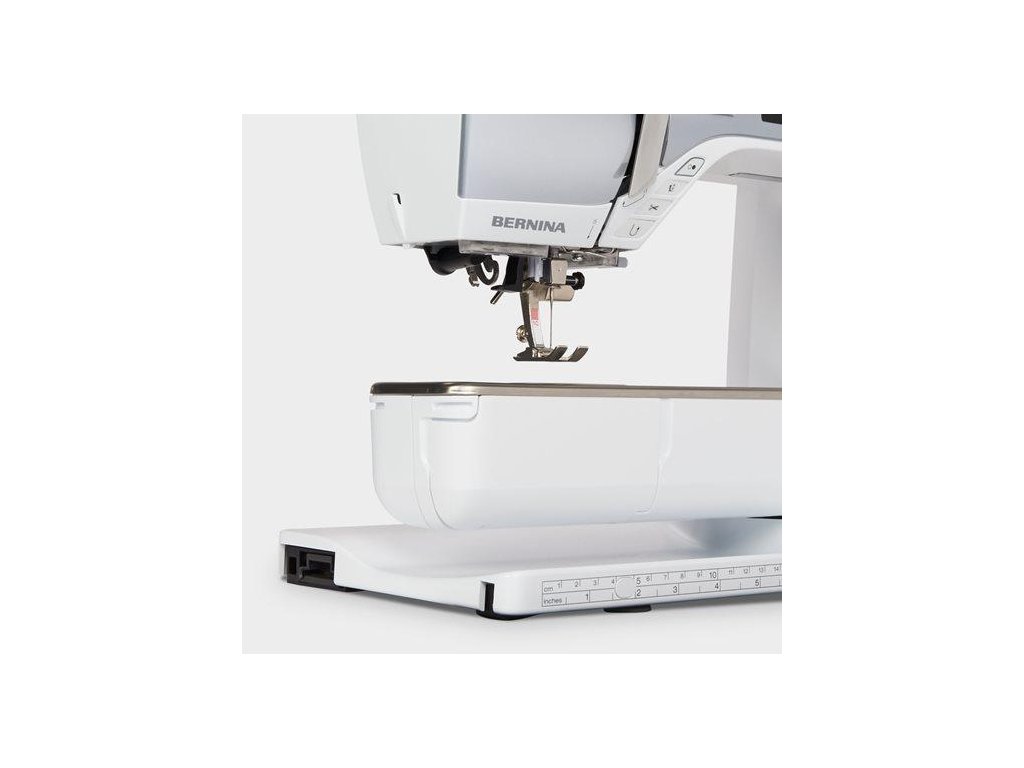 Prodloužené rameno. Jednoduchá práce na velkých projektech. Realizace Vaší kreativity. Dostatek prostoru pro pohodlné quiltování. Bernina 570 QE nabízí se svým prodlouženým ramenem 21 cm vpravo od jehly. I rozměrné quilty zvládnete bez velké námahy.