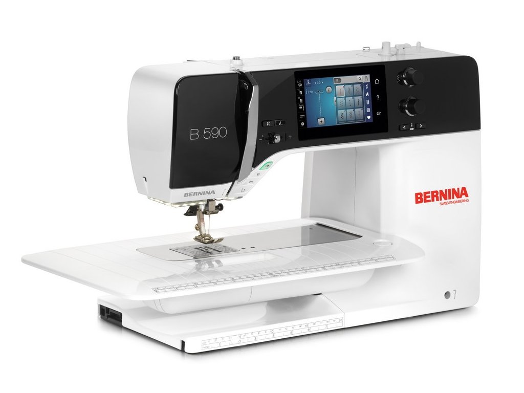 Bernina 590 má dost síly i pro nejnáročnější materiály, hravě šije i quiltuje přes mnoho vrstev. Snadno si poradí s velkými projekty ai ta nejjemnější výšivka bude dokonalá.