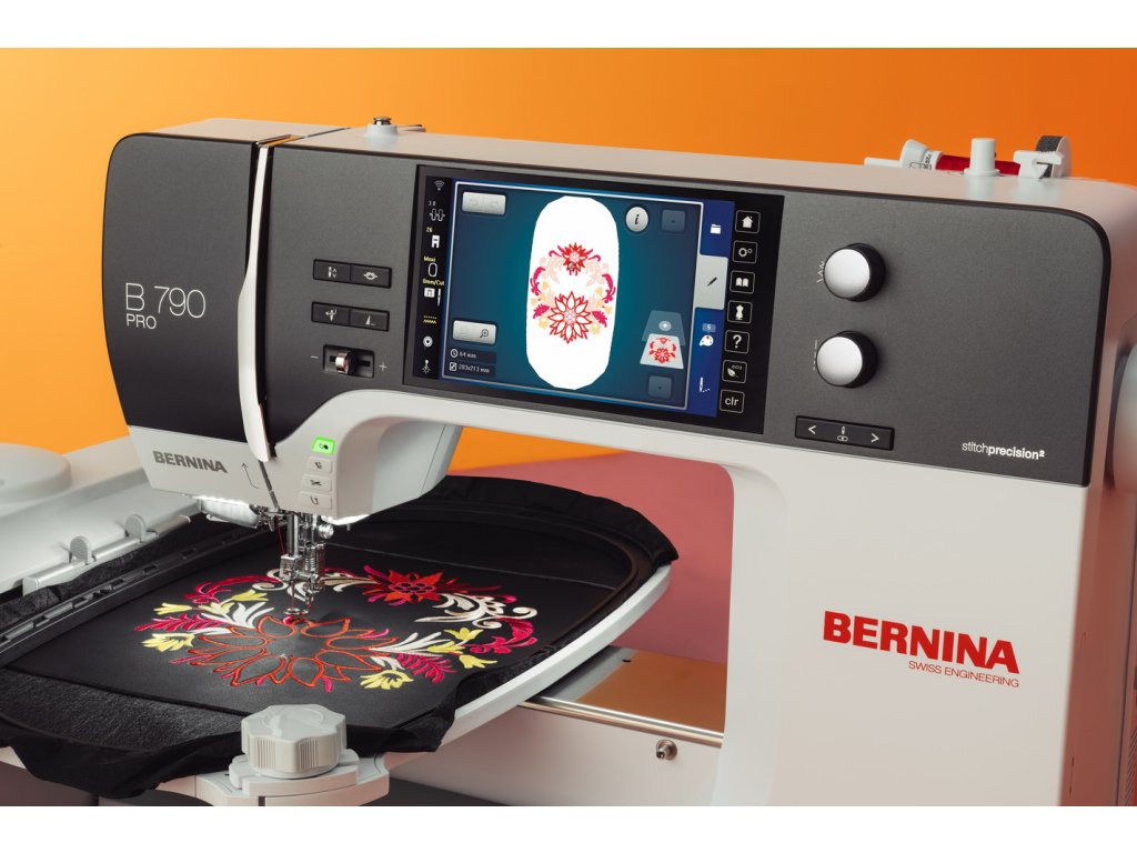 Vždy krásná výšivka. Umístěte svůj vzor přesně tam, kde ho chcete mít. Líc výšivky je vždy čistý. Intuitivní a snadná obsluha. Model Bernina 790 PRO je obohacen vyšívacími funkcemi, jako jsou: Pinpoint Placement, Vylepšené editační funkce, Celkové vyšívání Stitch Control&a mnohé další. Na vyšívání je nutné mít i vyšívací agregát Bernina L/SDT