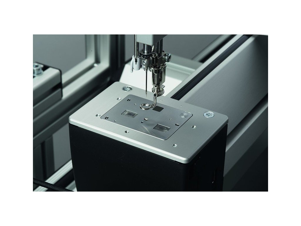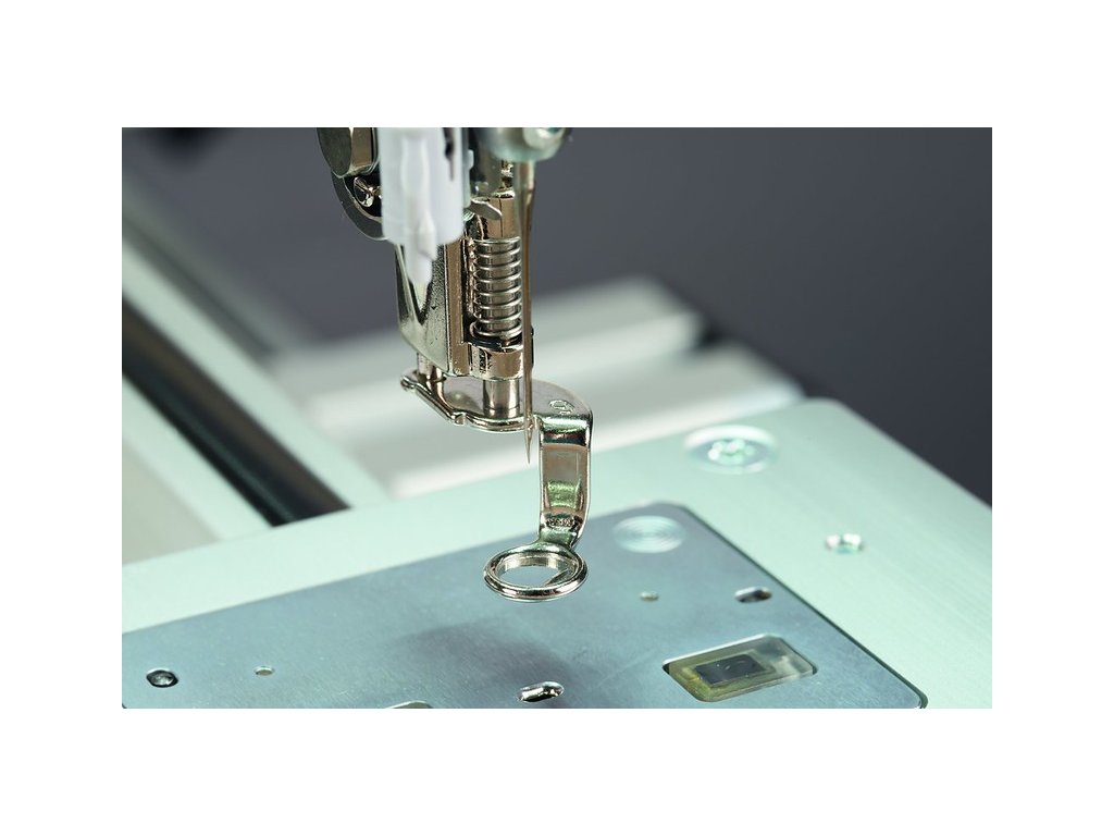Laserové snímání pohybu zajistí stejnou délku stehu, nastavitelnou od 1 do 25 mm. Stroj je plně ovladatelný zepředu, přičemž pozici jehly lze nastavit pomocí předního ručního kola. Vpředu u hlavy stroje je také možné navlékat spodní a horní nit nebo navíjet cívky pro spodní nit. Automatický navlékač jehly spolehlivě navleče nit do očka.
