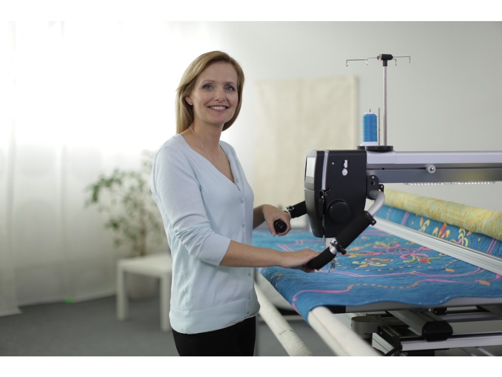 BERNINA přenáší to nejlepší ze světa domácích strojů na stroje s dlouhým ramenem (LONGARM) s jednoduchou barevnou dotykovou obrazovkou. Tato je zcela přizpůsobitelný a obsahuje užitečné funkce. pět uživatelských profilů, počítadlo stehů nebo integrované videonávody, které pomáhají při navlékání nití do stroje, olejování, navíjení cívky a jiných úkonech. quiltovaní přímo na stroji.